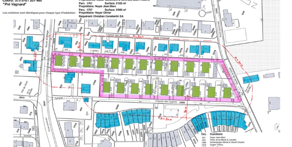 Notre bureau intervient dans les nombreuses phases de la réalisation d'un projet de construction, de la modélisation du terrain, à l'immatriculation du bâtiment au Registre foncier, en passant par la mise à l'enquête publique et les divers relevés et implantations en cours de chantier.